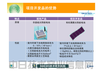 目前正在開發的太陽能電池的目標是,面向傳感器網絡終端用途,實現安裝后無需更換的自給電源,無需再更換電池。作為傳感器網絡終端的電源,也可使用現有的紐扣型電池,但是達到使用壽命之后必須更換。