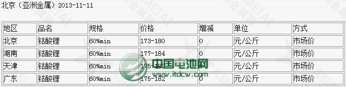 (附圖二為11月11日鈷酸鋰材料市場價格 數(shù)據(jù)來源:亞洲金屬網(wǎng))