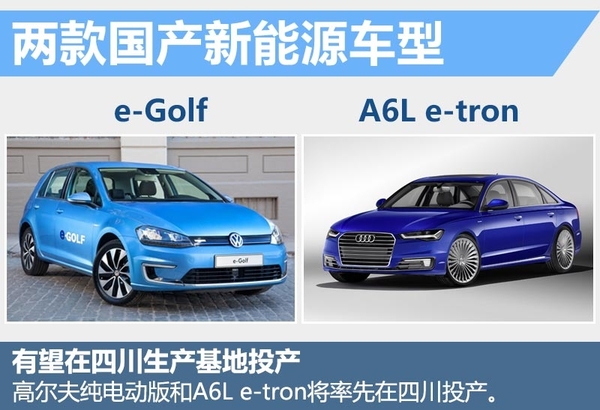 一汽大眾已確定在四川建設新能源基地,除確定的大眾首款新能源車型高爾夫純電動版(e-Golf)外,未來在此還將投產多款新能源車型。付炳鋒亦表示:“一汽將調整在川產品線,為滿足多樣需求,2017年前后,一汽大眾亦會在目前制造經濟適用型汽車基礎上,涉足高端品牌。”國產計劃的奧迪A6L插電混動—A6L e-tron也有望在一汽大眾四川生產基地投產。