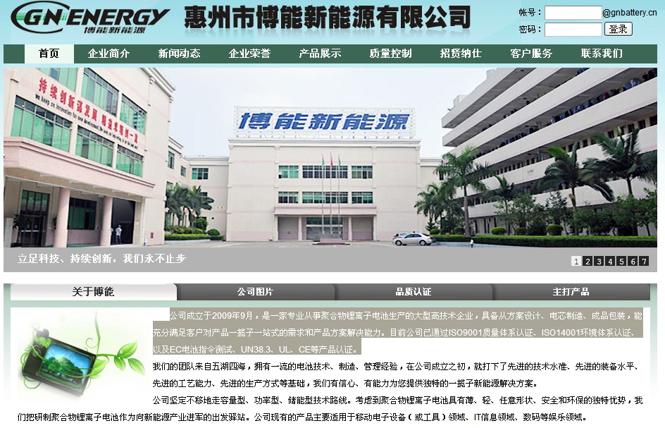 該公司網站顯示,博能新能源成立于2009年9月,是一家專業從事聚合物鋰離子電池生產的大型高技術企業,具備從方案設計、電芯制造、成品包裝,能充分滿足客戶對產品一攬子一站式的需求和產品方案解決能力。公司已通過ISO9001質量體系認證、ISO14001環境體系認證、以及EC電池指令測試、UN38.3、UL、CE等產品認證。