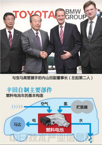 豐田就共同開發燃料電池車與德國寶馬正式達成了協議。豐田將向寶馬提供量產前的技術,將競爭對手拉入自已的陣營。這是豐田不再自恃自己有技術優勢,而是著眼于未來霸權的深謀遠慮的一招。