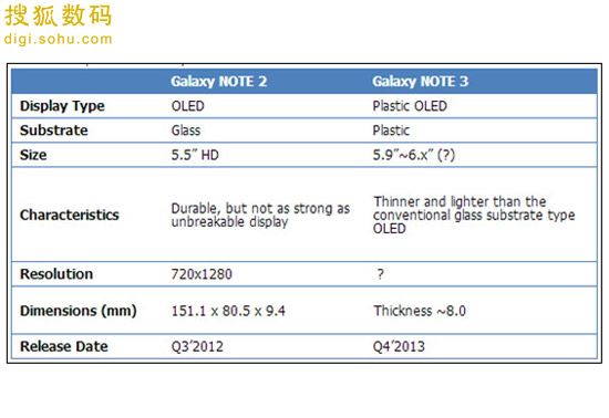 【搜狐數碼消息】4月23日消息,隨著三星新旗艦Galaxy S4的正式發布和上市,外界的期待現在都放在了三星下一代Galaxy Note巨屏手機身上。之前有傳聞表示,三星計劃為Note 3加入一塊6英寸巨屏。而日前又有報道稱,這款手機將配備世界首塊塑料OLED屏幕。對比目前使用玻璃面板的設備,塑料面板能讓設備的機身厚度和重量大幅降低。