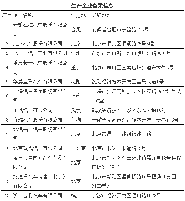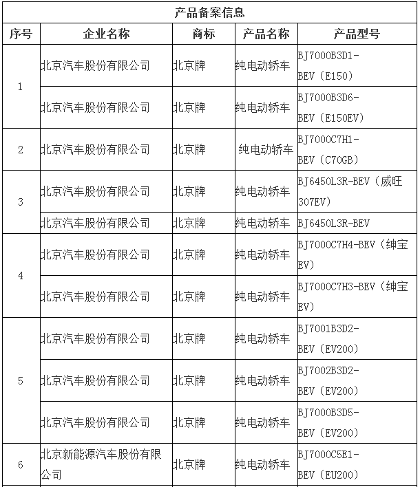 北京市示范應用純電動小客車生產企業及產品備案信息