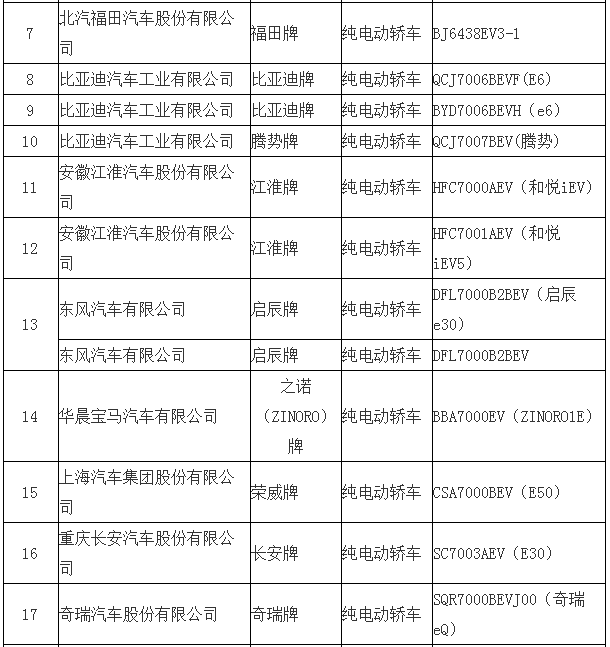 北京市示范應用純電動小客車生產企業及產品備案信息(前4批)