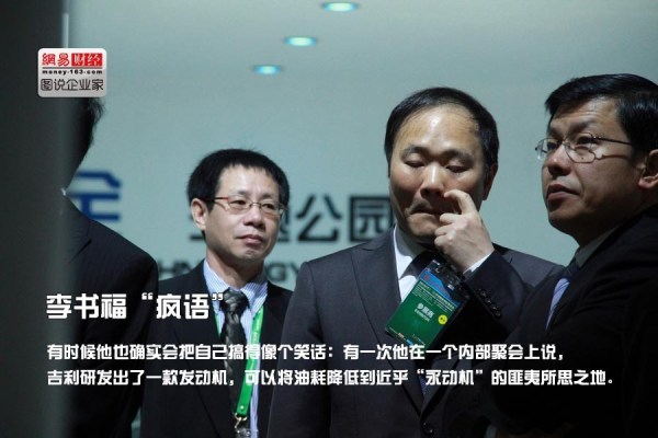 2000年美國幾大汽車巨頭如日中天,他在某汽車論壇上“大放厥詞”:“通用、福特遲早要關門!”氣得幾個跨國公司代表中途退場。有 時候他也確實會把自己搞得像個笑話:有一次他在一個內部聚會上說,吉利研發(fā)出了一款發(fā)動機,可以將油耗降低到近乎“永動機”的匪夷所思之地。在場的每個 人,當中有不少工商業(yè)巨子,都一臉嚴肅地盯著他看,認真聆聽著他。聚會結束后,有人說:“大嘴?!?