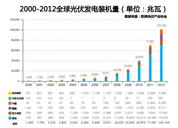 反觀中國,盡管國家推行了好幾年的光伏發(fā)電補(bǔ)貼政策,但是效果并不好。根據(jù)國家發(fā)改委能源研究所研究員王斯成的統(tǒng)計(jì),太陽能發(fā)電在中國整個(gè)能源結(jié)構(gòu)中依然微不足道,據(jù)統(tǒng)計(jì),2012年中國太陽能發(fā)電量僅為35億千瓦時(shí),僅占全國發(fā)電量的0.07%。