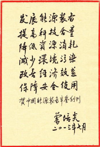 國務院原副總理曾培炎的親筆題詞