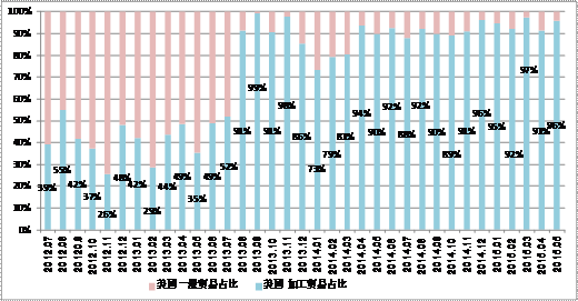 圖4 自美國按加工貿易進口占比 圖52015 年5 月份國別按加工貿易方式進口占比 數據來源:海關 因此,硅業分會認為,只有嚴格執行“58號”文件堵住加工貿