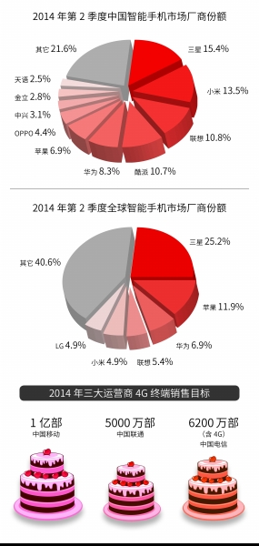 當北京三里屯眾人排隊搶購iPhone的瘋狂場景漸去漸遠,當三星“蓋世”系列智能手機的星光日漸黯淡,如今在中國的大街小巷、餐廳、地鐵車廂內(nèi),手握華為、聯(lián)想、酷派、中興、小米等國產(chǎn)手機的人比比皆是,此時誰也不能否認,國內(nèi)智能終端市場格局已經(jīng)悄然改變。蘋果、三星曾經(jīng)一統(tǒng)天下的局面不復存在,國產(chǎn)手機群體崛起,大洗牌正在持續(xù)進行。與此同時,伴隨國內(nèi)4G商用大幕的拉開,一場不見硝煙的4G終端爭奪戰(zhàn)也在如火如荼地展開。4G時代,誰能笑傲江湖,華為、聯(lián)想還是小米,更加令人熱切期待。