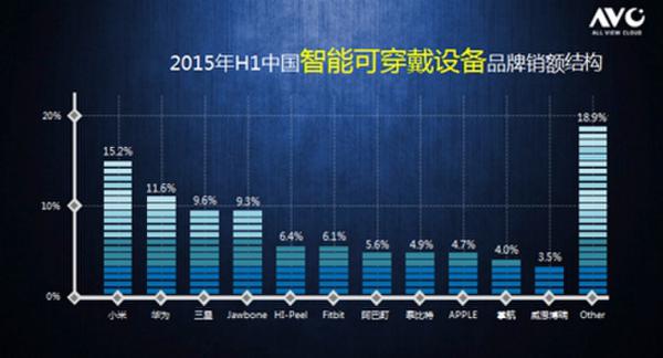 2015年H1中國(guó)智能可穿戴設(shè)備品牌銷額結(jié)構(gòu)