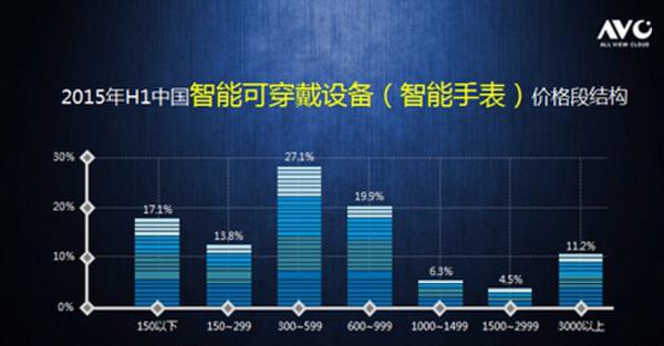 2015年H1中國(guó)智能可穿戴設(shè)備(智能手表)價(jià)格段結(jié)構(gòu)