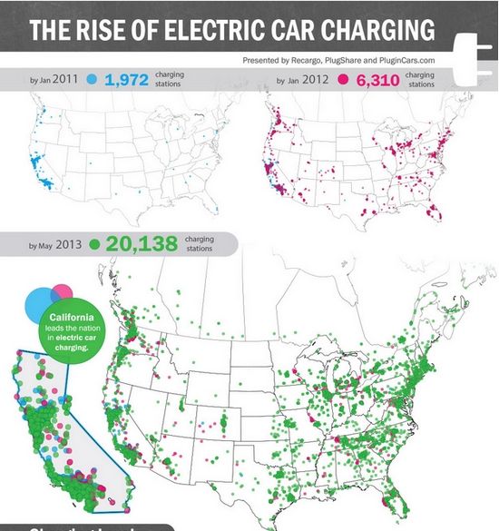 近日,美國充電網(wǎng)絡(luò)軟件及服務(wù)提供商Recargo制作了一張信息圖,從這張圖中,我們可以直觀的了解到截至2013年5月,美國充電網(wǎng)絡(luò)及電動汽車發(fā)展的概況。