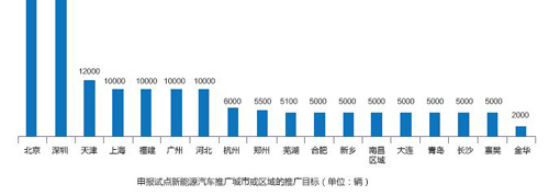 此次申報試點的城市中,北京目標定得最高,為3.5萬輛;深圳緊隨其后,為3.489萬輛;天津為1.2萬輛;上海和廣州各1萬輛;福建和河北的城市群1萬輛。其余大部分城市都按照5000輛的目標上報。