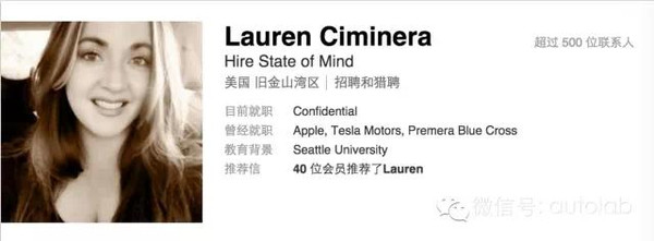 自己挖人還不夠,蘋果還要挖一個(gè)懂挖人的人來挖人。前不久,蘋果就前特斯拉的首席招聘員Lauren Ciminera給硬生生地挖過來了。