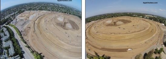 Gopro相機拍下的蘋果(Apple)公司“飛碟”新總部的地基