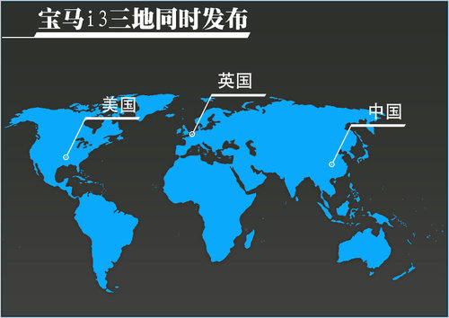 本次寶馬i3電動車的發布地點分別選在了三個不同的國家,分別為美國的紐約、英國的輪渡以及中國的北京,這三個國家分別代表著歐洲、北美洲以及亞洲,借此向全球表明了在新能源領域進軍世界的決心。