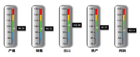 從分指標(biāo)運(yùn)行指數(shù)來看,2012年11月中輕產(chǎn)值景氣指數(shù)95.35(上月 95.58)、銷售景氣指數(shù)為96.12(上月 95.11)、出口景氣指數(shù)102.00(上月99.52)、資產(chǎn)景氣指數(shù)97.77(上月98.13)、利潤景氣指數(shù)93.14(上月 92.67)。與上月相比,除資產(chǎn)景氣指數(shù)外,均呈現(xiàn)上漲態(tài)勢。