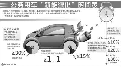 據(jù)新華社電國家機(jī)關(guān)事務(wù)管理局、財政部、科技部、工業(yè)和信息化部、國家發(fā)展改革委昨天聯(lián)合公布了《政府機(jī)關(guān)及公共機(jī)構(gòu)購買新能源汽車實(shí)施方案》,明確了政府機(jī)關(guān)和公共機(jī)構(gòu)公務(wù)用車“新能源化”的時間表和路線圖。