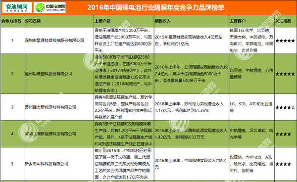 • 2016年中國鋰電池行業隔膜年度競爭力品牌榜單 日期:2016-11-10 15:43:57 點擊:5762 好評:0