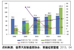 傳統內燃機汽車經歷了百年輝煌后,在節能與環保的雙重壓力下,傳統汽車工業日漸式微。從產量來看,2012年,全球汽車產量超過8400萬輛,同比增幅約為5.3%,2011年的增速僅為2.8%。隨著全球汽...