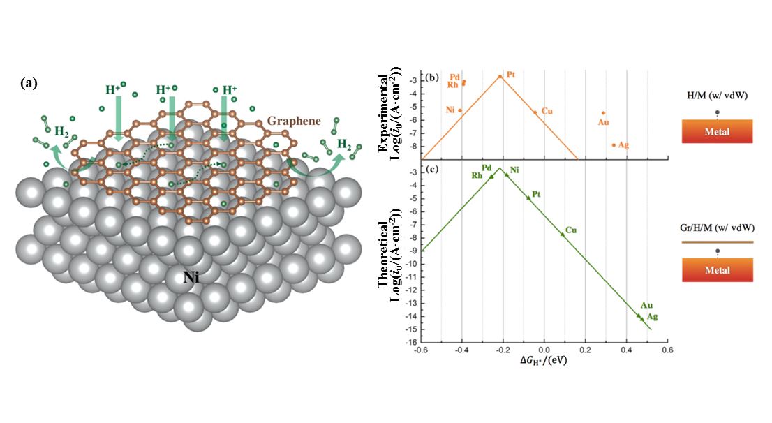當(dāng)氫原子位于石墨烯和不同金屬的界面時(shí),其吸附能比在沒(méi)有石墨烯覆蓋的金屬上都有一定程度的減弱。特別突出的是,金屬鎳面的吸附能因?yàn)槭┑母采w,其相應(yīng)的析氫能力被調(diào)控到火山型曲線的峰值附近,成為具有高催化活性的催化劑材料。...