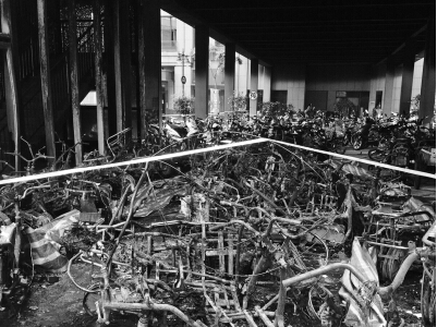 昨日凌晨,鄭州金城時(shí)代廣場(chǎng)小區(qū)一居民樓下的電動(dòng)車充電點(diǎn)著火,五六十輛電動(dòng)車被燒得只?!肮羌堋保髽峭鈮Ρ谎谑畮讓?,所幸沒有人員傷亡。...