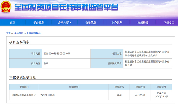 • 兩張新能源汽車“準生證”節前連發 8個月新批產能超63萬 日期:2017-01-27 16:04:57 點擊:241 好評:0